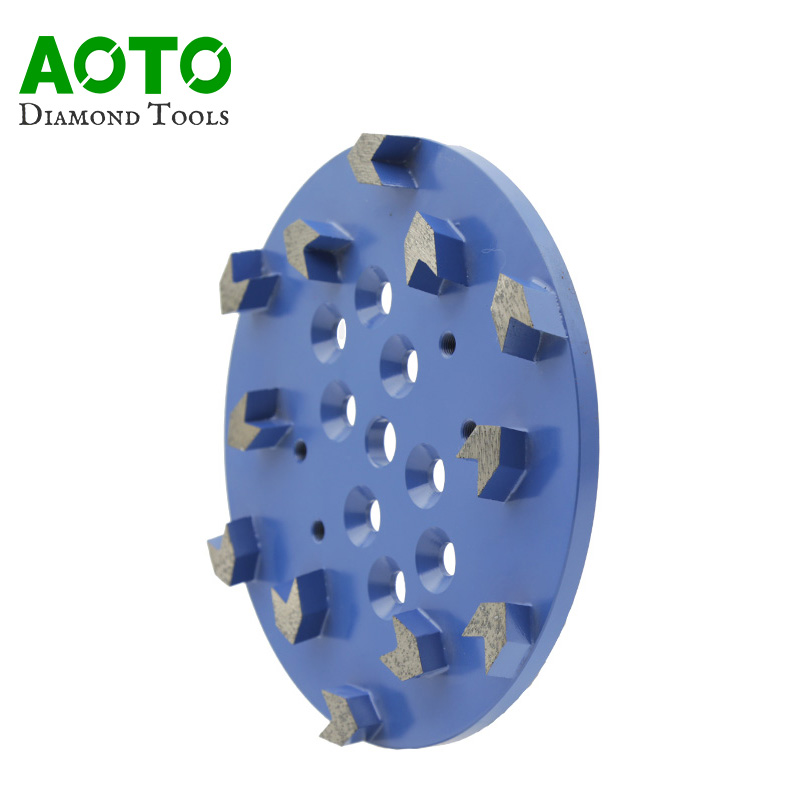 1. Concrete repairs, floor flattening and aggressive exposure.2. Special base design, lighter, better chip removal.3. Exclusive designed segments shape for more active jobs.4. Good balance.5. We also provide customization services to fullfill any special requirements